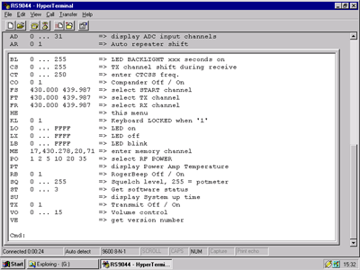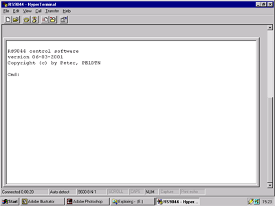 Hiernaast het opstartscherm van de RS9044. De communicatie