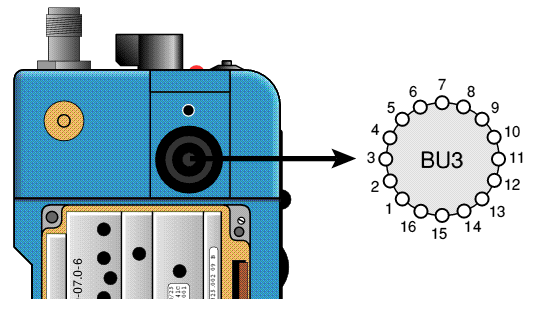 PTC Temperatuurvoeler (batterij) Mik Ext Externe microfoon U Mik Interne microfoon (2V) Kfz Vehicle call ST2 PTT knop RUF1 Oproeptoon 1 (tevens zijkant) LSP Luidspreker NFA Audio uitgang RUF2 Oproeptoon 2 (tevens zijkant) A3 Voeding geschakeld GND Ground, massa A1 Batterij direct A2 Voeding ongeschakeld RSPK Squelch NFE Laagfrequent van ontvanger NFS2 Audio direct naar modulator