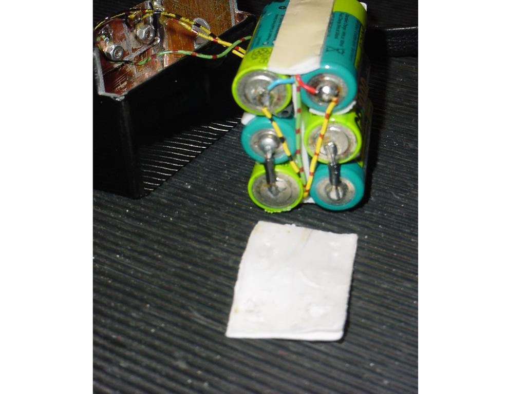 De PTC weerstand moet worden aangebracht tussen de Nicads.